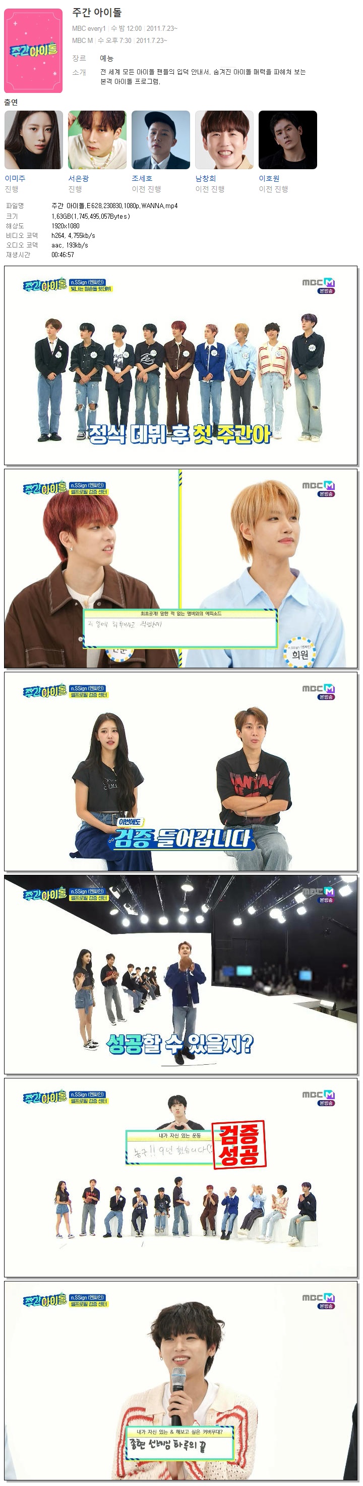 | 주간 아이돌.E628.230830.1080p.WANNA.mp4 | 1.6 G | 00:46:57 | 1920x1080 |