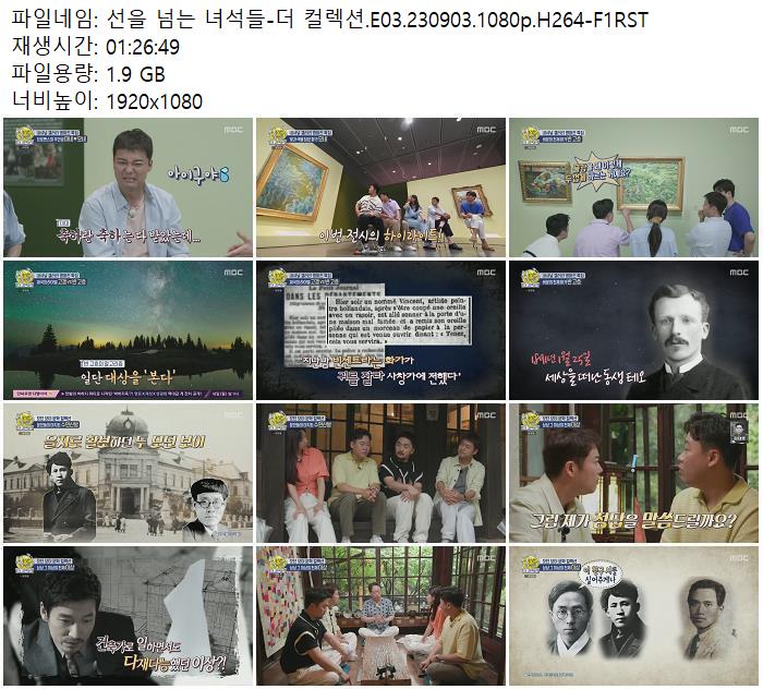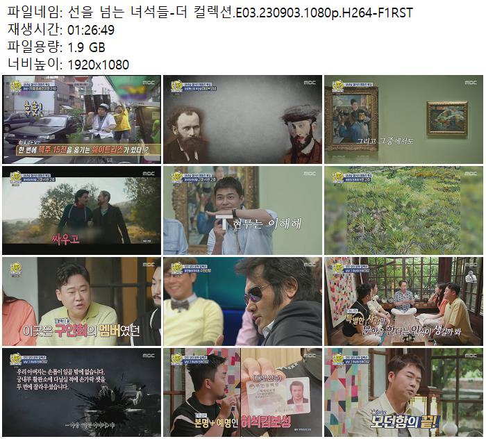 | 선을 넘는 녀석들-더 컬렉션.E03.230903.1080p.H264-F1RST.mp4 | 1.9 G | 01:26:49 | 1920x1080 |