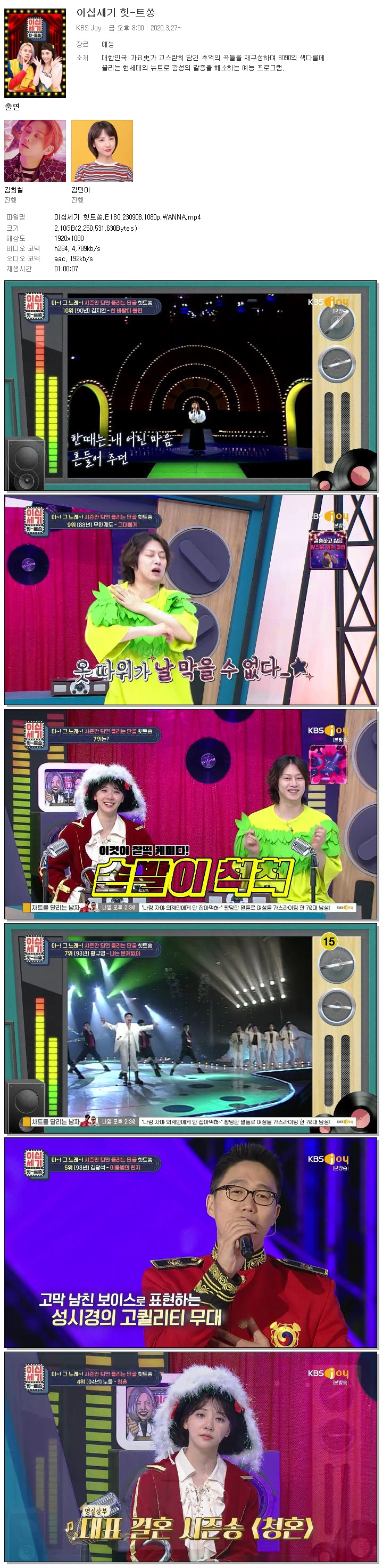 이십세기 힛트쏭.E180.230908.1080p.WANNA.mp4 2.1 G 01:00:07 1920x1080