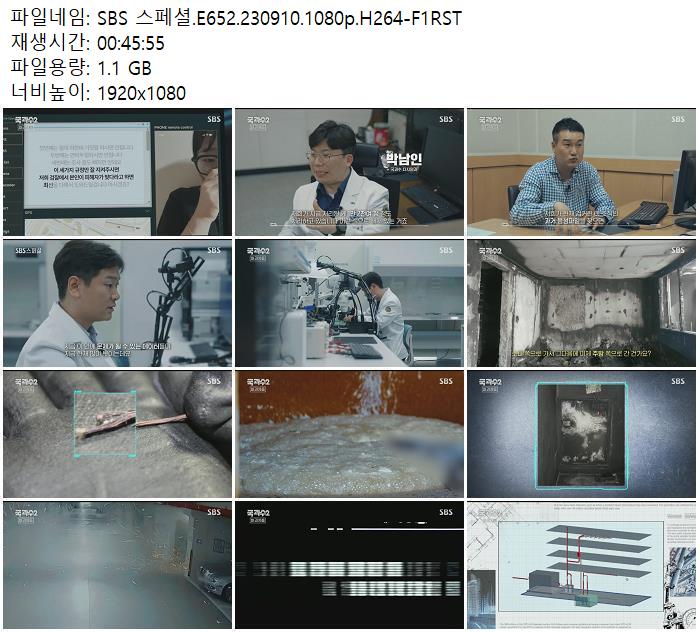 | SBS 스페셜.E652.230910.1080p.H264-F1RST.mp4 | 1.1 G | 00:45:55 | 1920x1080 |