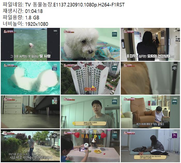 | TV 동물농장.E1137.230910.1080p.H264-F1RST.mp4 | 1.8 G | 01:04:18 | 1920x1080 |