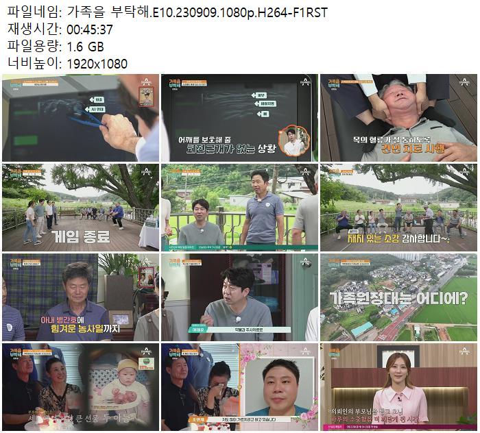 | 가족을 부탁해.E10.230909.1080p.H264-F1RST.mp4 | 1.6 G | 00:45:37 | 1920x1080 |