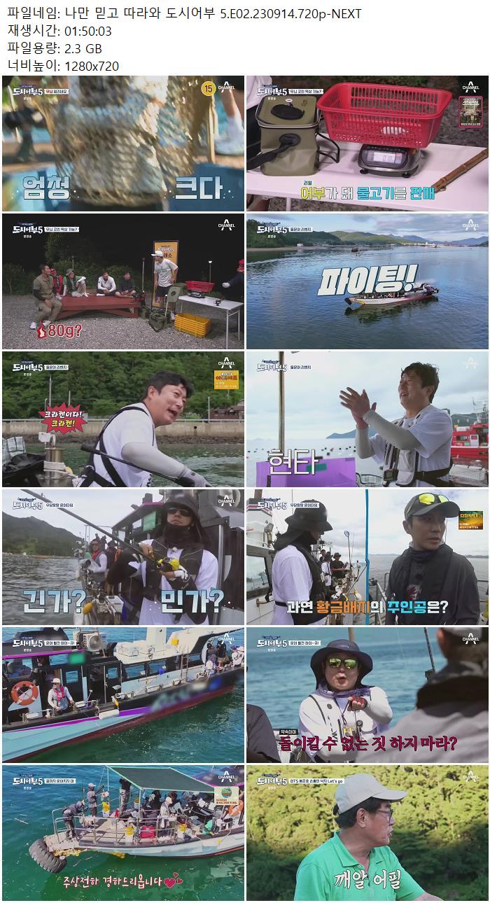 | 나만 믿고 따라와 도시어부 5.E02.230914.720p-NEXT.mp4 | 2.3 G | - | 1280x720 |