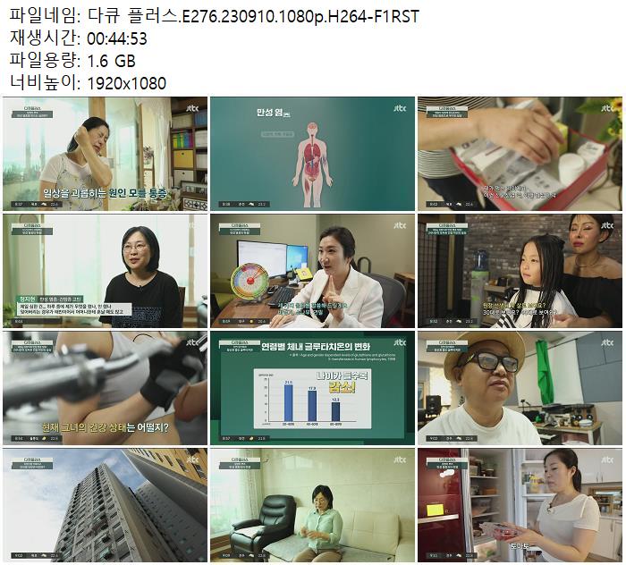 | 다큐 플러스.E276.230910.1080p.H264-F1RST.mp4 | 1.6 G | 00:44:53 | 1920x1080 |