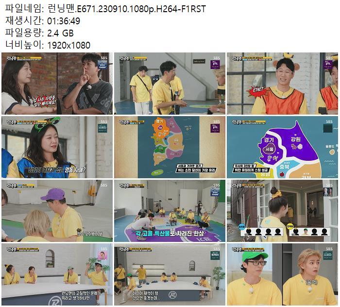 | 런닝맨.E671.230910.1080p.H264-F1RST.mp4 | 2.4 G | 01:36:49 | 1920x1080 |