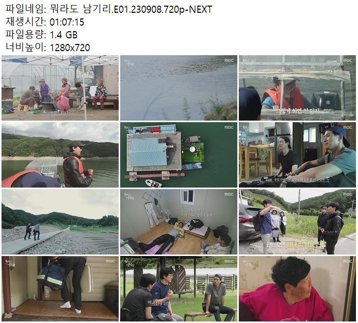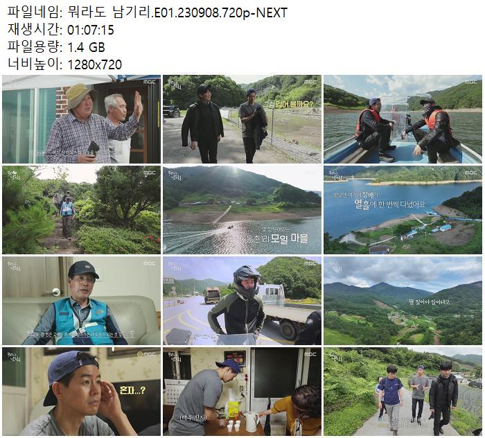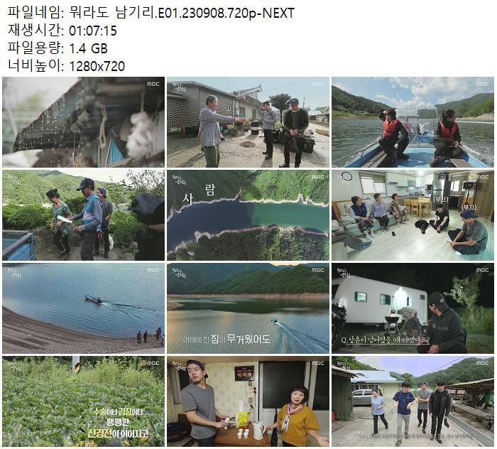 | 뭐라도 남기리.E01.230908.720p-NEXT.mp4 | 1.4 G | 01:07:15 | 1280x720 |