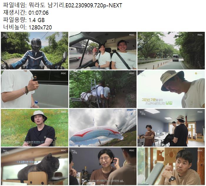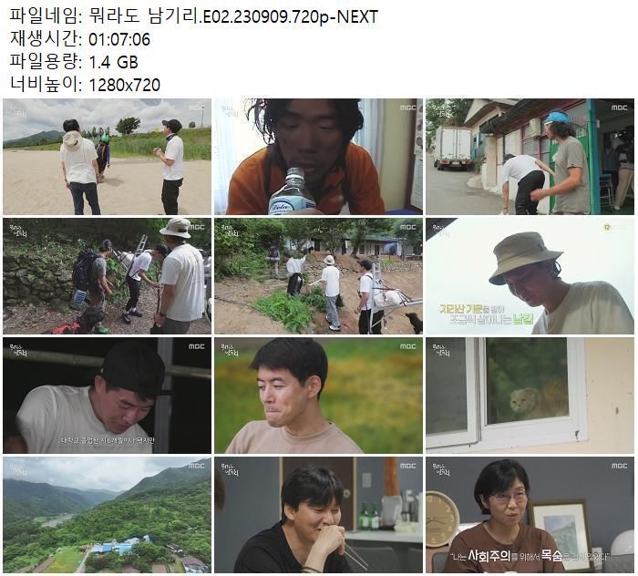 | 뭐라도 남기리.E02.230909.720p-NEXT.mp4 | 1.4 G | 01:07:06 | 1280x720 |