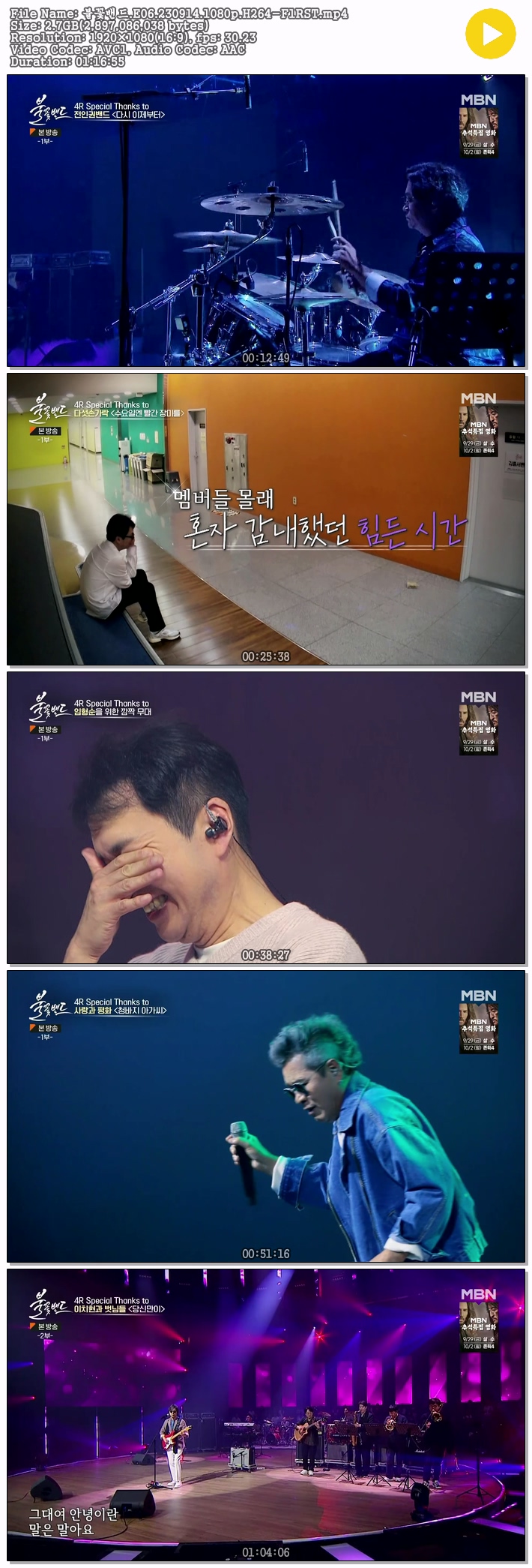 | 불꽃밴드.E06.230914.1080p.H264-F1RST.mp4 | 2.7 G | 01:16:55 | 1920x1080 |
