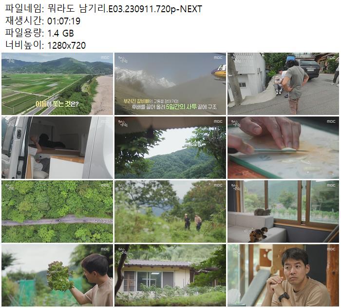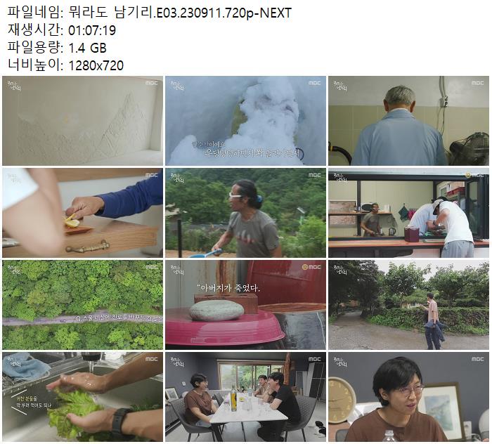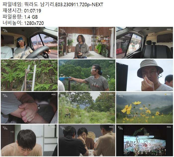 | 뭐라도 남기리.E03.230911.720p-NEXT.mp4 | 1.4 G | 01:07:19 | 1280x720 |