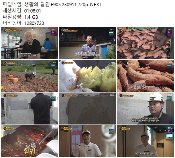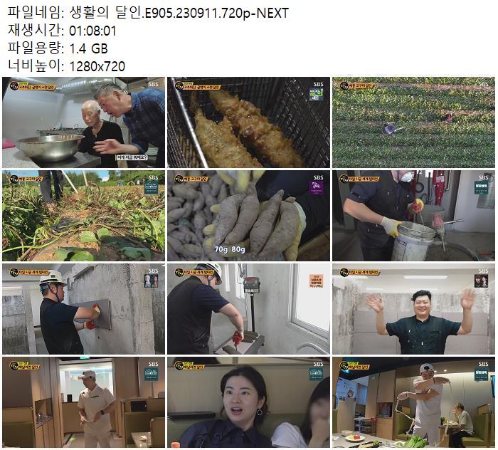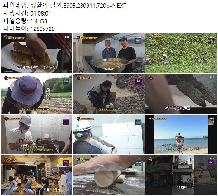 | 생활의 달인.E905.230911.720p-NEXT.mp4 | 1.4 G | 01:08:01 | 1280x720 |