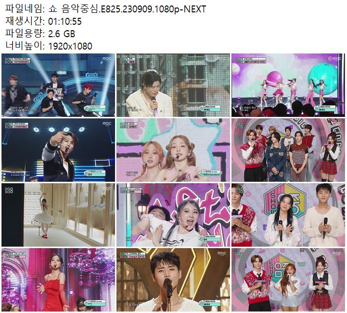 | 쇼 음악중심.E825.230909.1080p-NEXT.mp4 | 2.6 G | 01:10:55 | 1920x1080 |