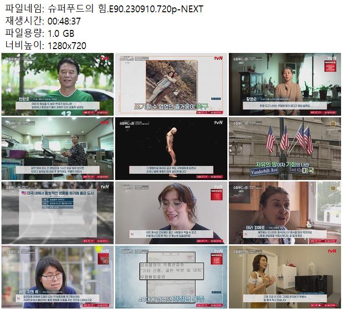 | 슈퍼푸드의 힘.E90.230910.720p-NEXT.mp4 | 1 G | 00:48:37 | 1280x720 |