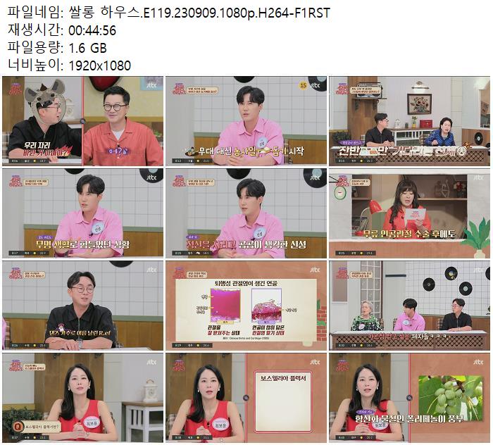 | 쌀롱 하우스.E119.230909.1080p.H264-F1RST.mp4 | 1.6 G | 00:44:56 | 1920x1080 |