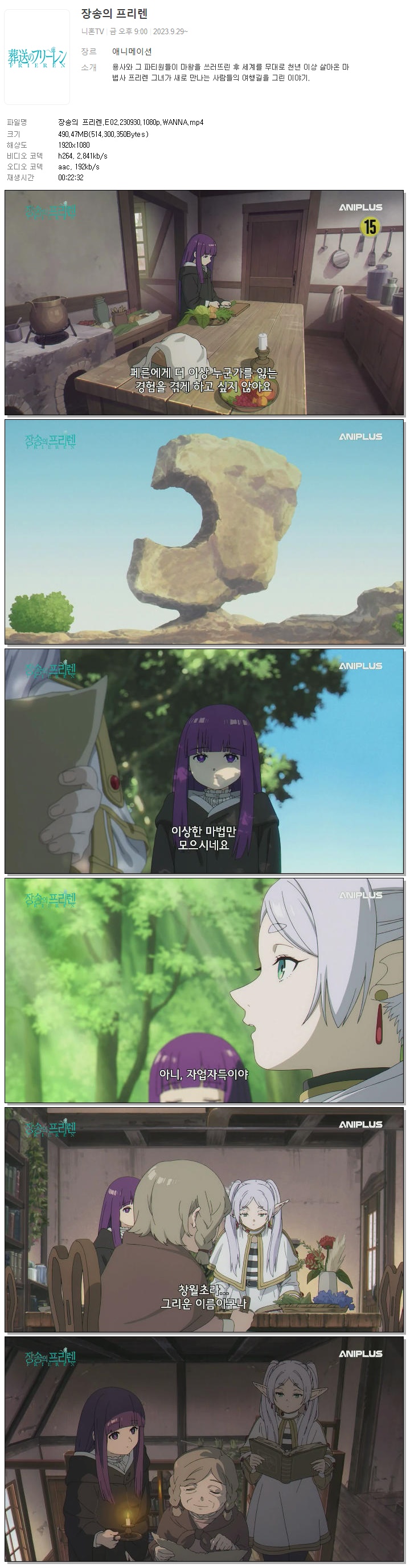 장송의 프리렌.E02.230930.1080p.WANNA.mp4 490.5 M 00:22:32 1920x1080