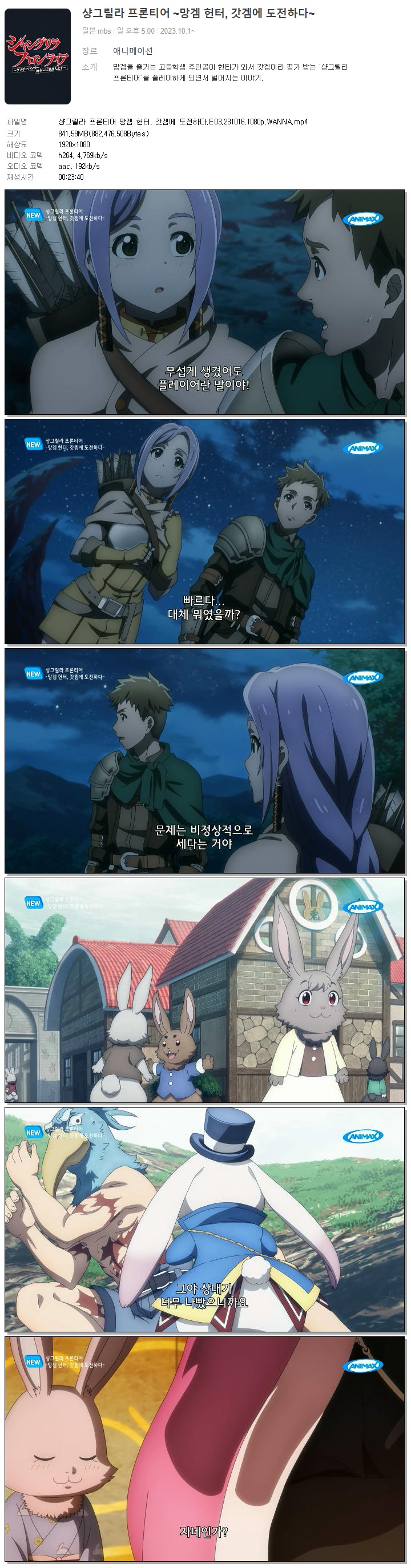 | 샹그릴라 프론티어 망겜 헌터, 갓겜에 도전하다.E03.231016.1080p.WANNA.mp4 | 841.6 M | 00:23:40 | 1920x1080 |