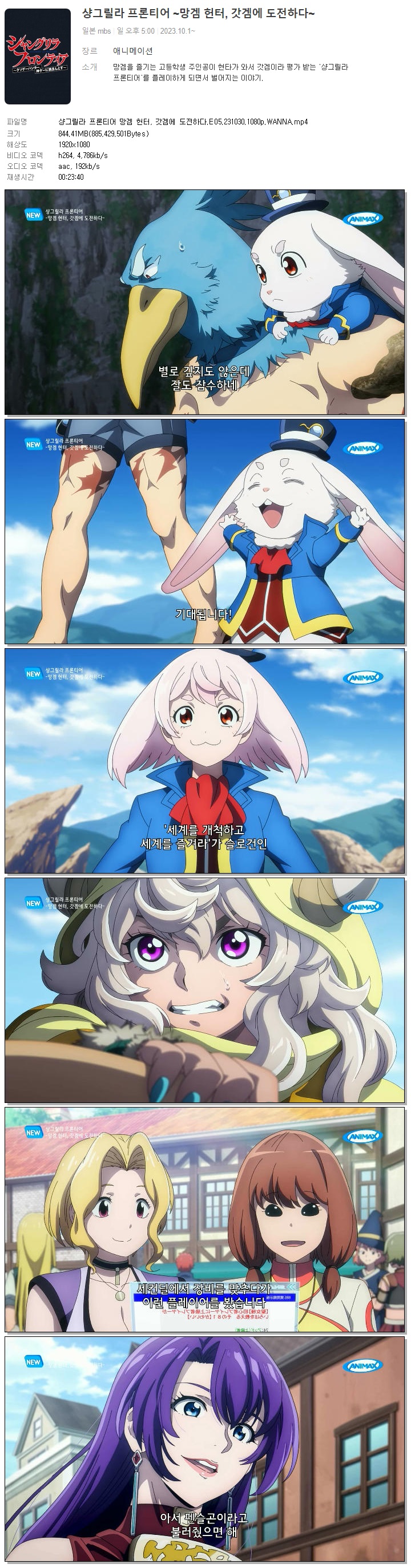 | 샹그릴라 프론티어 망겜 헌터, 갓겜에 도전하다.E05.231030.1080p.WANNA.mp4 | 844.4 M | 00:23:40 | 1920x1080 |