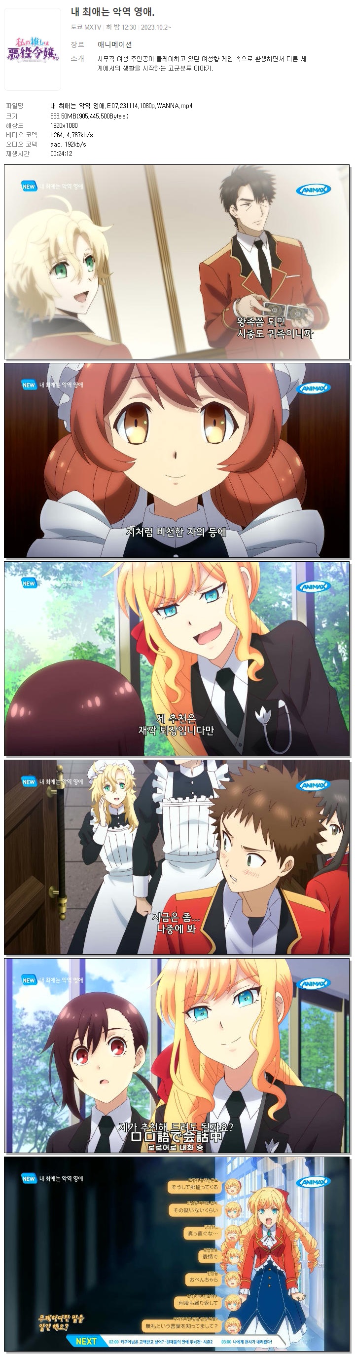 내 최애는 악역 영애.E07.231114.1080p.WANNA.mp4 863.5 M 00:24:12 1920x1080