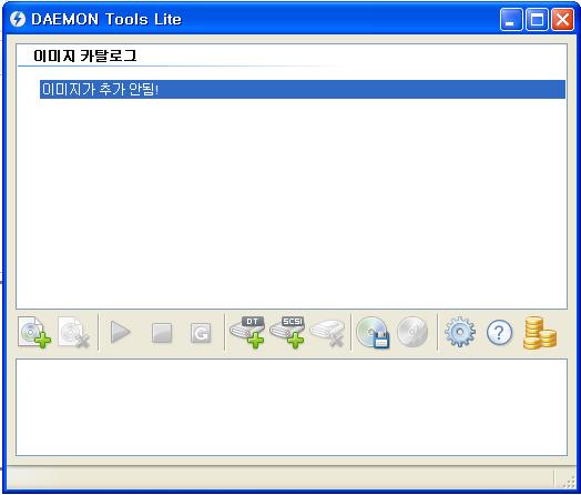 다운 받으신 Pro Evolution Soccer 2010 폴더 안을 살펴보시면 Pro Evolution Soccer 2010.iso 라는 iso 형태의 압축 파일이 보이실 겁니다. 이제 이 파일을 DAEMON Tools Lite라는 프로그램을 이용해 설치할 것입니다. 데몬은 인터넷에 검색하시면 무료로 다운받으실 수 있습니다. (참고로 저는 4.41.3.0173 버전을 사용하였습니다. 버전마다 약간 사용법이 다를 수 있습니다.) 데몬을 실행하면 모니터 오른쪽 아래에 번개모양의 데몬 툴이 뜰겁니다. 마우스 왼쪽버튼을 더블클릭하시거나 마우스 오른쪽 버튼을 누르고 실행목록에서 굵은 글씨로 적힌 DAEMON Tools Lite를 클릭하시면 아래와 같은 창이 뜰겁니다.