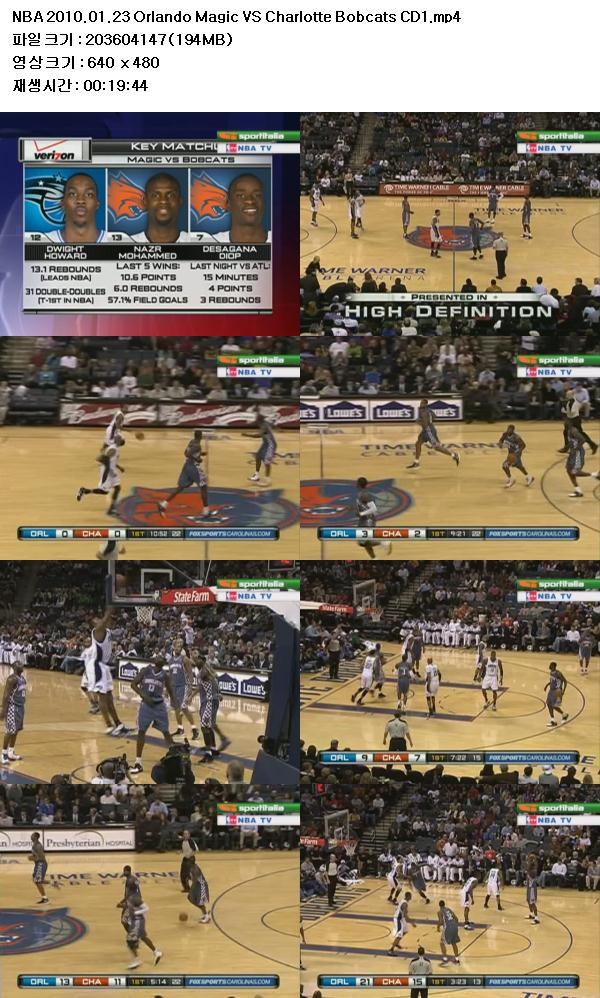 NBA 2010.01.23 Orlando Magic VS Charlotte Bobcats 다시보기 토렌트
