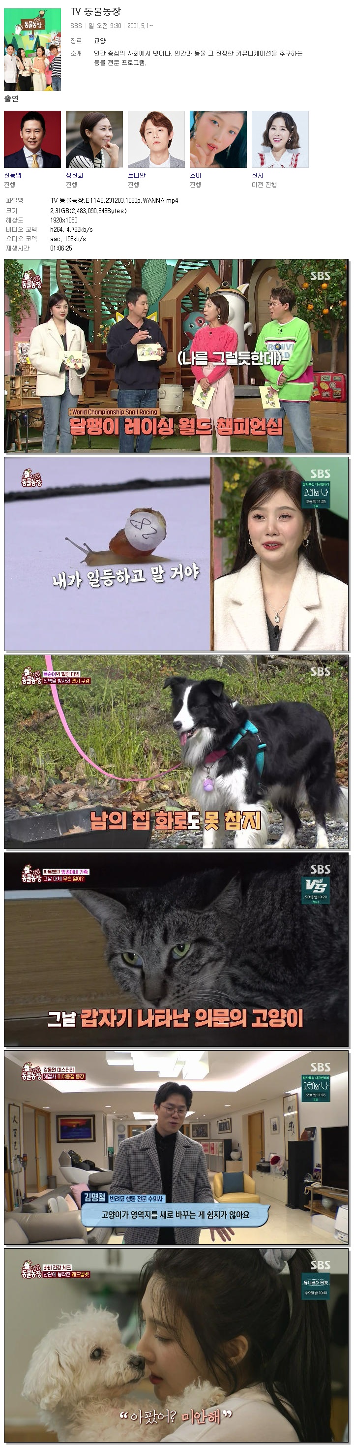 TV 동물농장.E1148.231203.1080p.WANNA.mp4 2.3 G 01:06:25 1920x1080