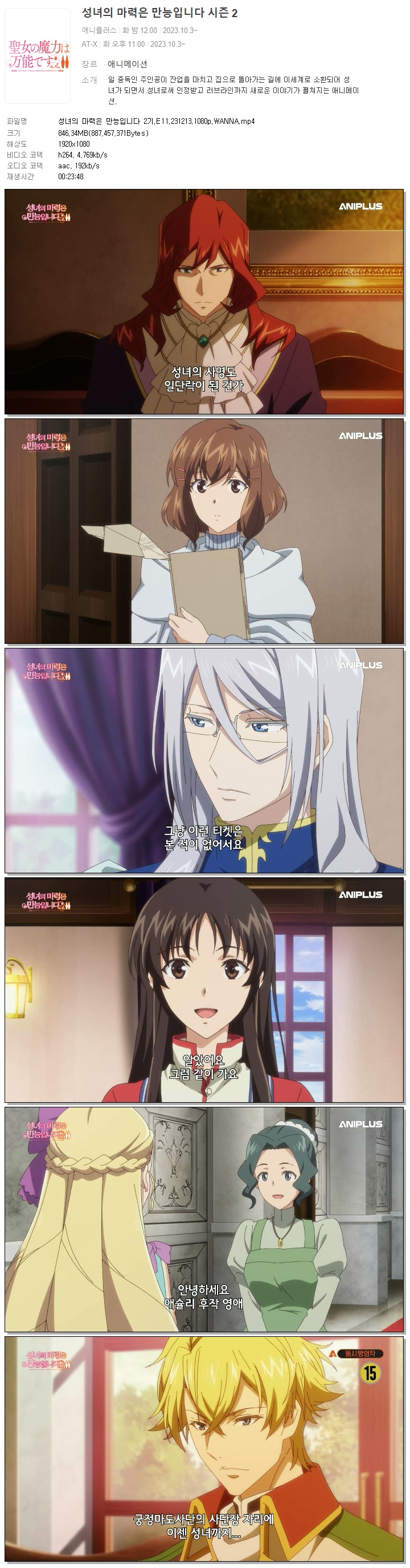 성녀의 마력은 만능입니다 2기.E11.231213.1080p.WANNA 다시보기 토렌트