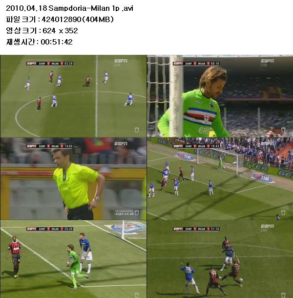 [세리에A 34R] 삼프도리아 vs AC 밀란 [100418] 다시보기 토렌트