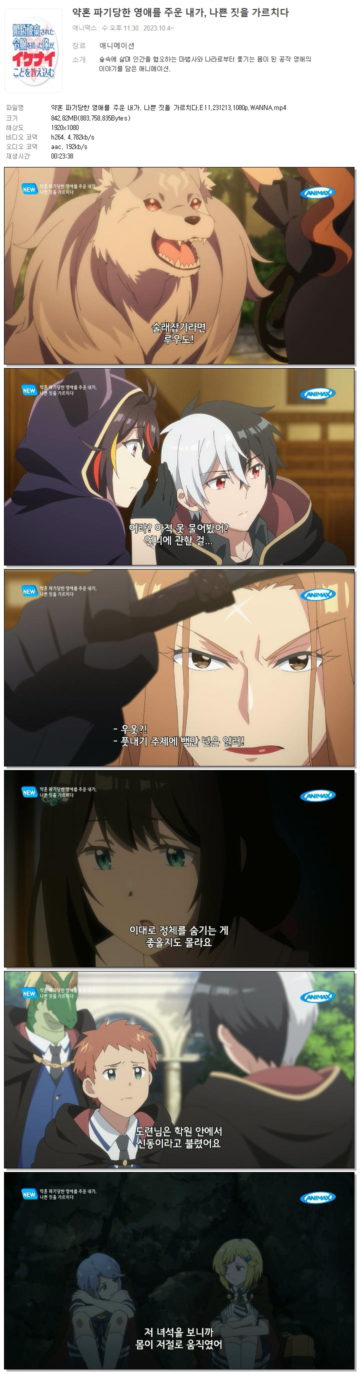 | 약혼 파기당한 영애를 주운 내가, 나쁜 짓을 가르치다.E11.231213.1080p.WANNA.mp4 | 842.8 M | 00:23:38 | 1920x1080 |