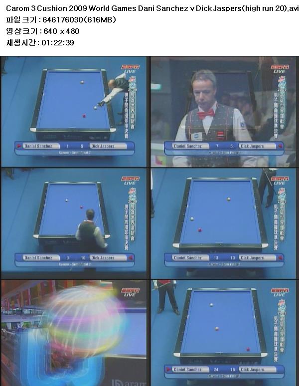 Carom 3 Cushion 2009 World Games Dani Sanchez v Dick Jaspers(high run 20).avi 616.2 M - -