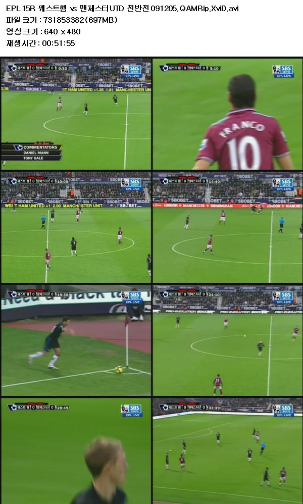 | EPL 15R 웨스트햄 vs 맨체스터UTD 전반전 091205.QAMRip.XviD.avi | 697.9 M | - | - |