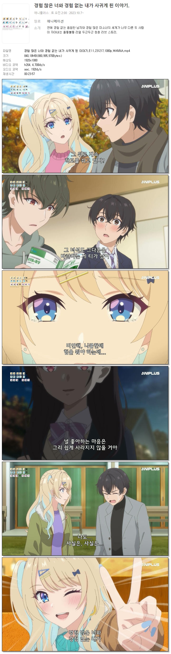 경험 많은 너와 경험 없는 내가 사귀게 된 이야기.E11.231217.1080p.WANNA 다시보기 토렌트