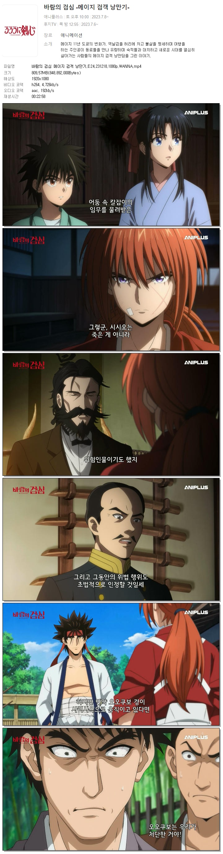 | 바람의 검심 메이지 검객 낭만기.E24.231218.1080p.WANNA.mp4 | 809.6 M | 00:22:58 | 1920x1080 |
