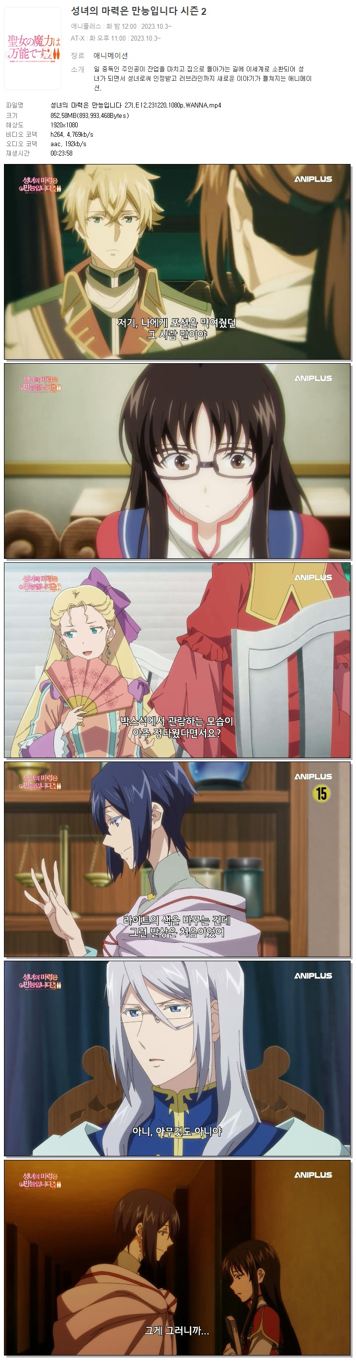 성녀의 마력은 만능입니다 2기.E12.231220.1080p.WANNA 다시보기 토렌트