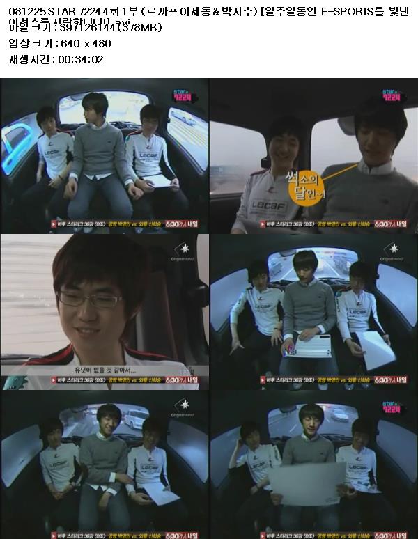 | 081225 STAR 7224 4회 1부 (르까프 이제동 & 박지수) [일주일동안 E-SPORTS를 빛낸 이선수를 사랑합니다!].avi | 378.7 M | - | - |