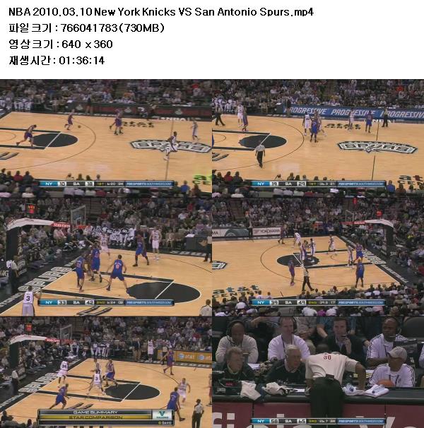 NBA 2010.03.10 New York Knicks VS San Antonio Spurs 다시보기 토렌트