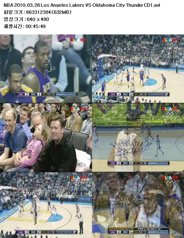 NBA 2010.03.26 Los Angeles Lakers VS Oklahoma City Thunder 다시보기 토렌트