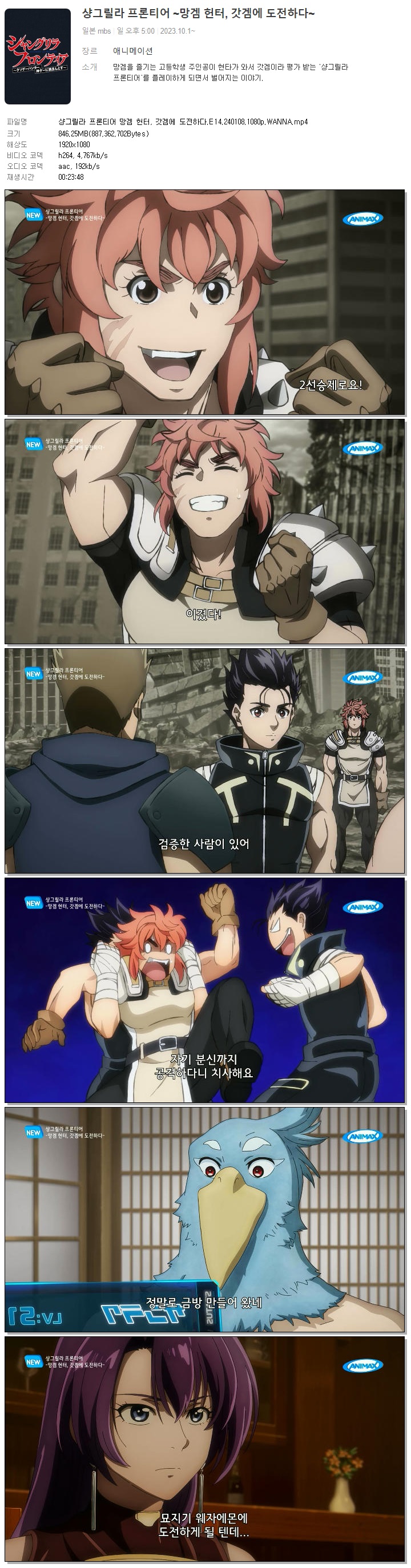 | 샹그릴라 프론티어 망겜 헌터, 갓겜에 도전하다.E14.240108.1080p.WANNA.mp4 | 846.3 M | 00:23:48 | 1920x1080 |
