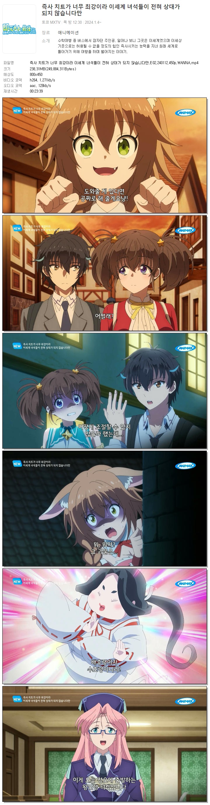즉사 치트가 너무 최강이라 이세계 녀석들이 전혀 상대가 되지 않습니다만.E02.240112.450p.WANNA 다시보기 토렌트