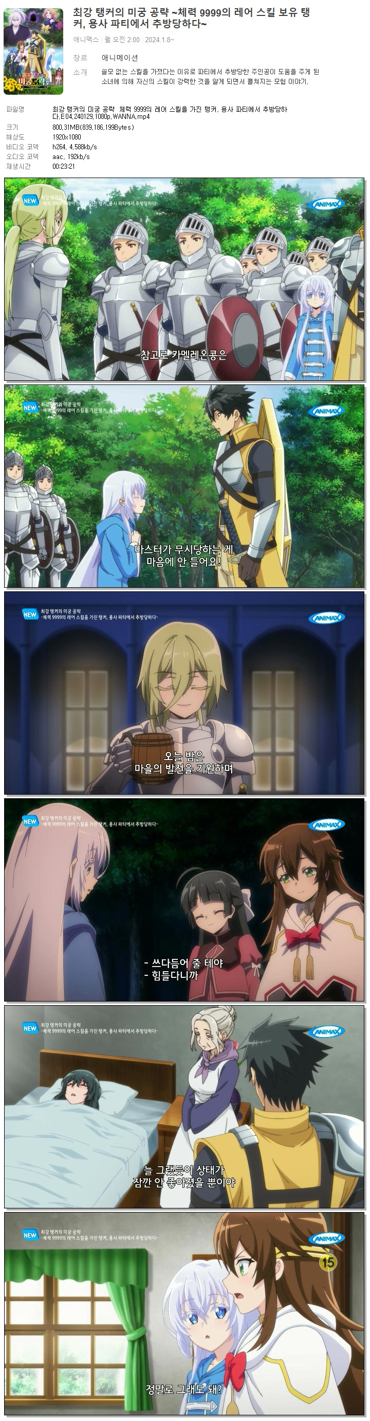 최강 탱커의 미궁 공략 체력 9999의 레어 스킬을 가진 탱커, 용사 파티에서 추방당하다.E04.240129.1080p.WANNA 다시보기 토렌트