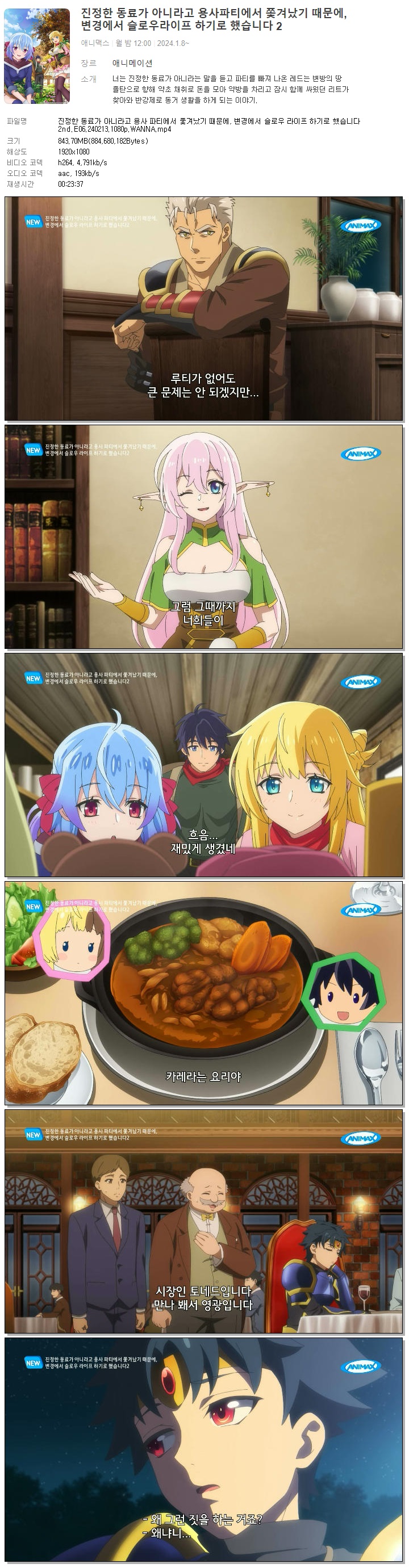 진정한 동료가 아니라고 용사 파티에서 쫓겨났기 때문에, 변경에서 슬로우 라이프 하기로 했습니다 2nd.E06.240213.1080p.WANNA 다시보기 토렌트