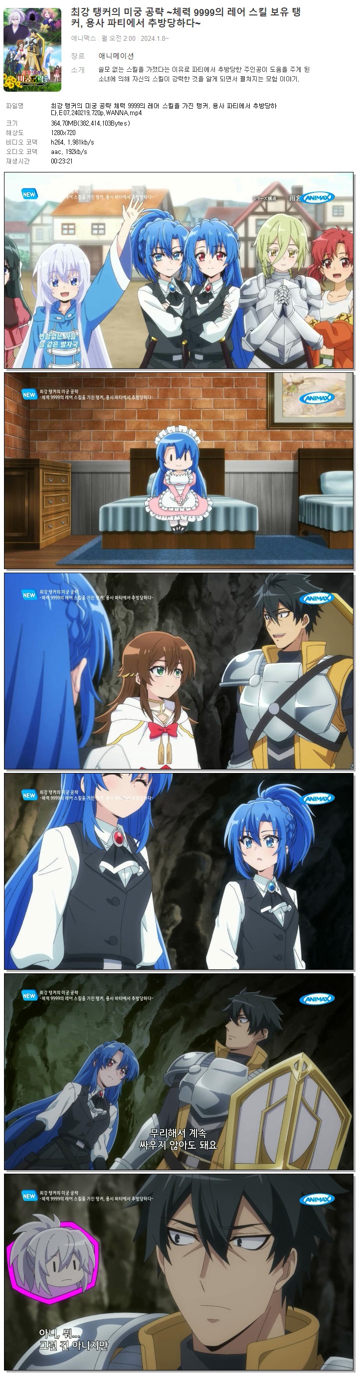 최강 탱커의 미궁 공략 체력 9999의 레어 스킬을 가진 탱커, 용사 파티에서 추방당하다.E07.240219.720p.WANNA.mp4 364.7 M 00:23:21 1280x720