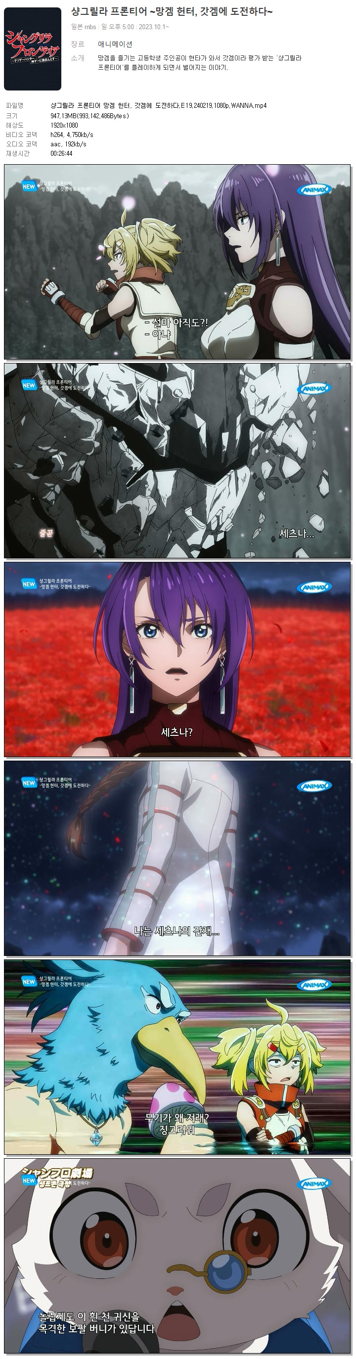 | 샹그릴라 프론티어 망겜 헌터, 갓겜에 도전하다.E19.240219.1080p.WANNA.mp4 | 947.1 M | 00:26:44 | 1920x1080 |