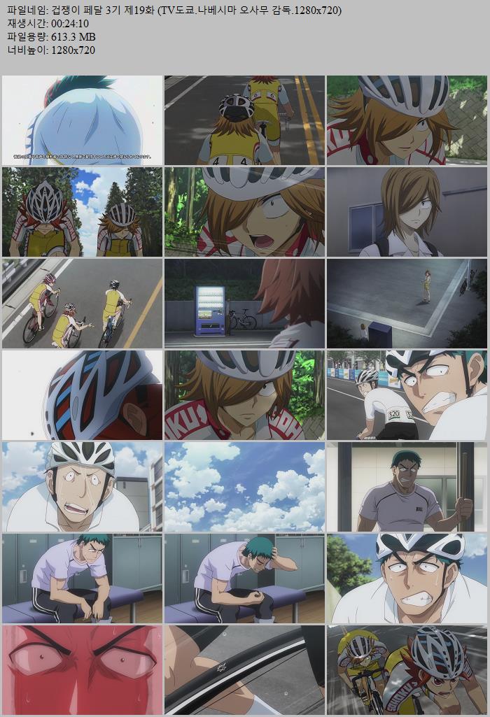 | 겁쟁이 페달 3기 제19화 (TV도쿄.나베시마 오사무 감독.1280x720).mp4 | 613.3 M | - | 1280x720 |