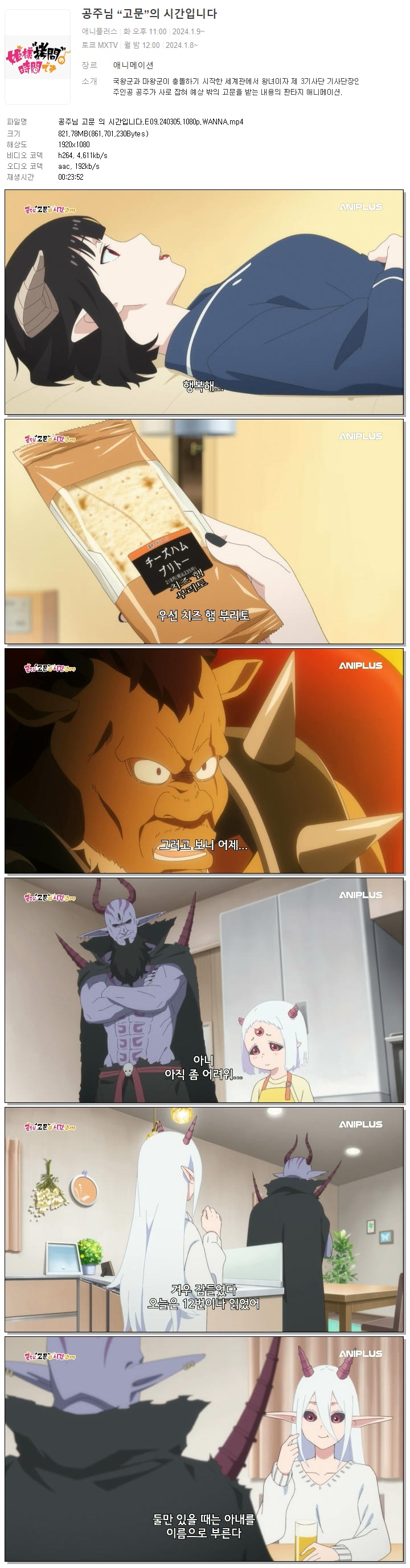 | 공주님 고문 의 시간입니다.E09.240305.1080p.WANNA.mp4 | 821.8 M | 00:23:52 | 1920x1080 |