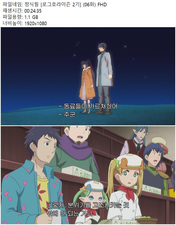 | 정식릴 [로그호라이즌 2기] (06화) FHD.mp4 | 1.1 G | 00:24:35 | 1920x1080 |