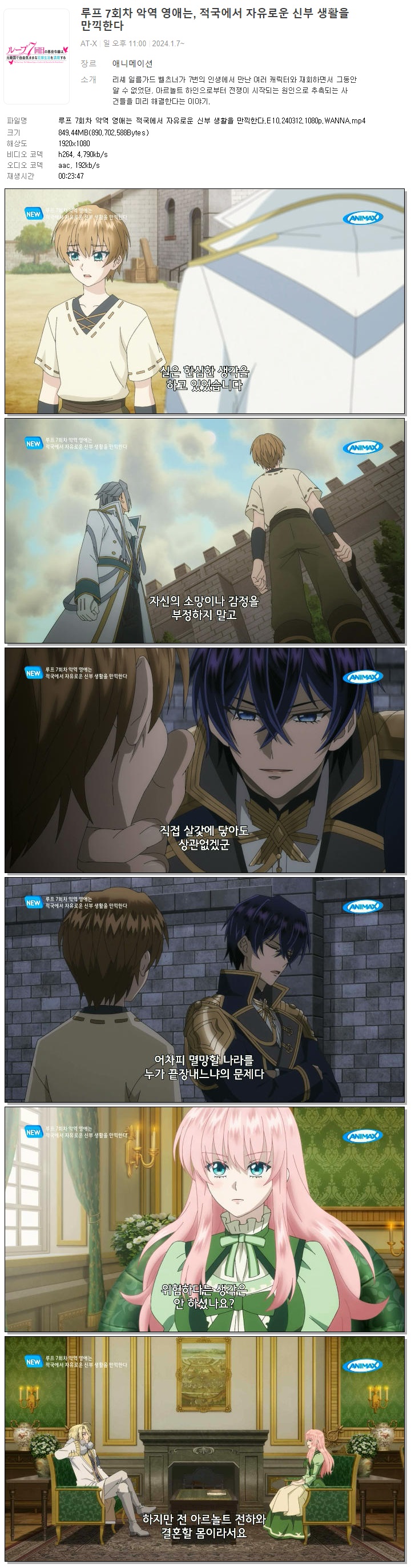 루프 7회차 악역 영애는 적국에서 자유로운 신부 생활을 만끽한다.E10.240312.1080p.WANNA 다시보기 토렌트