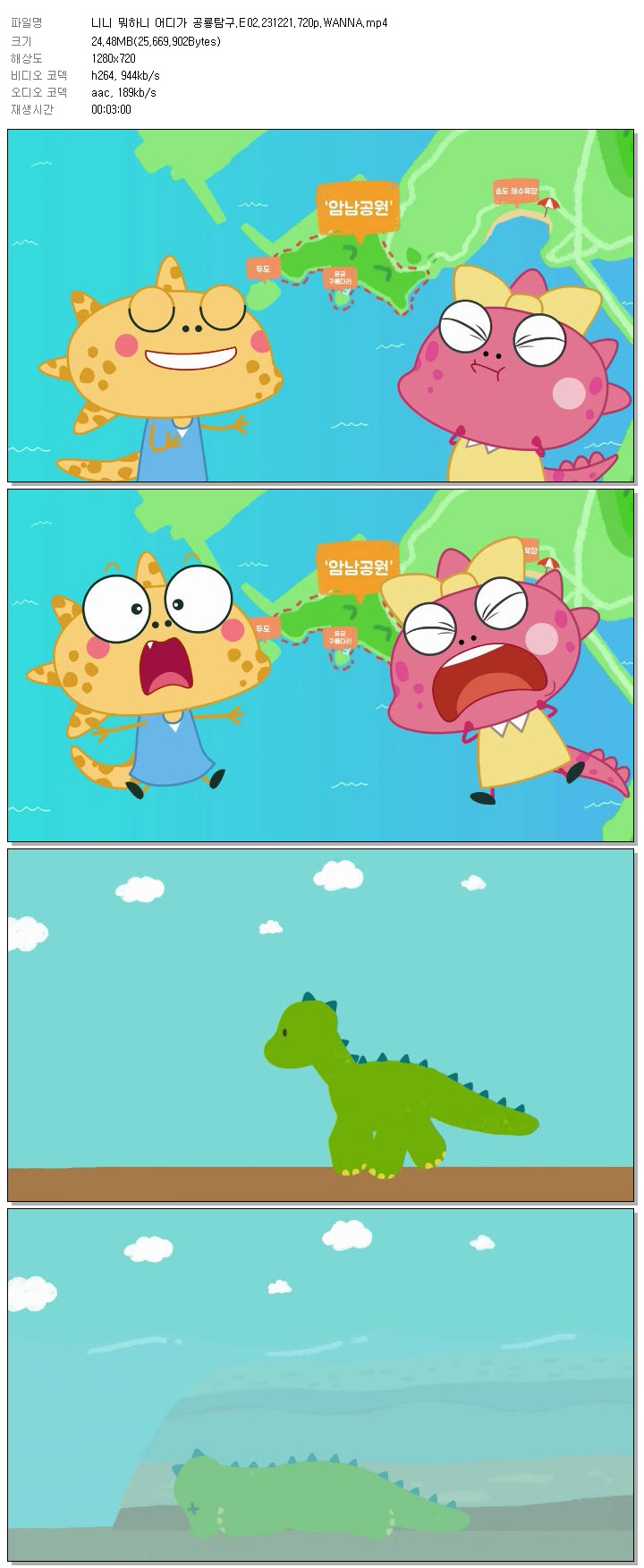 | 니니 뭐하니 어디가 공룡탐구.E02.231221.720p.WANNA.mp4 | 24.5 M | 00:03:00 | 1280x720 |