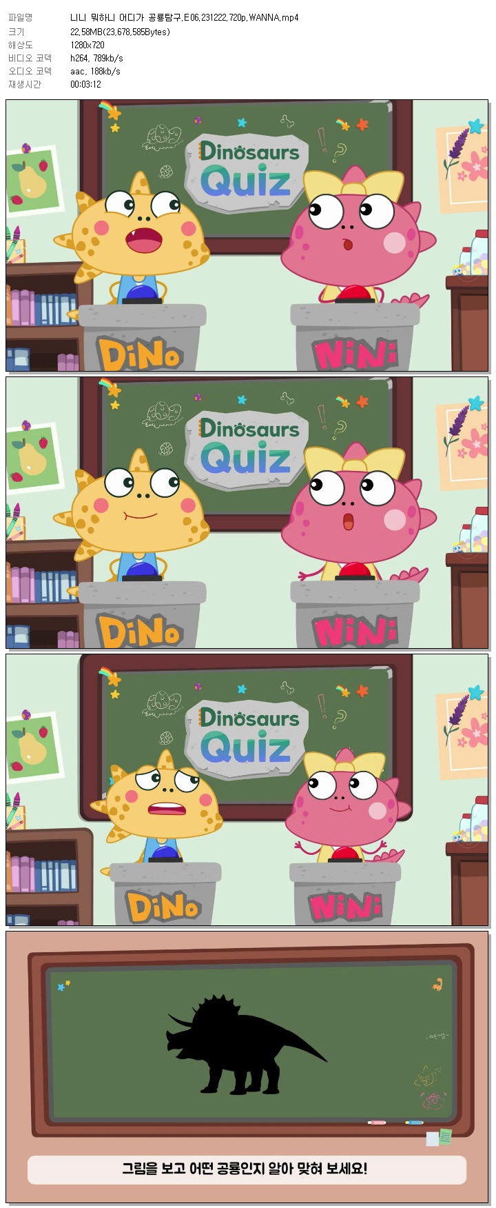 니니 뭐하니 어디가 공룡탐구.E06.231222.720p.WANNA.mp4 22.6 M 00:03:12 1280x720