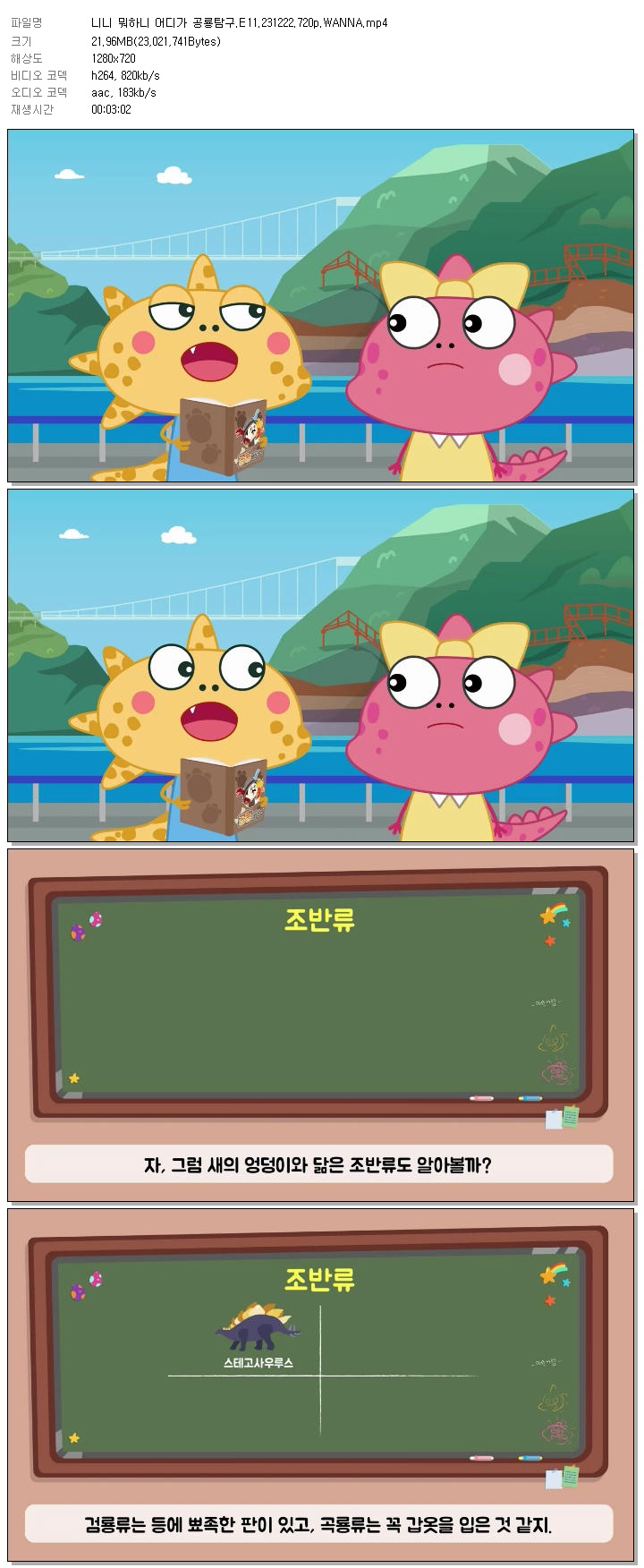 | 니니 뭐하니 어디가 공룡탐구.E11.231222.720p.WANNA.mp4 | 22 M | 00:03:02 | 1280x720 |