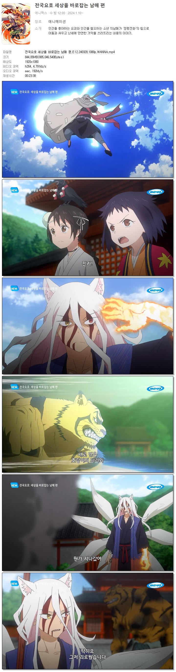 | 전국요호 세상을 바로잡는 남매 편.E12.240328.1080p.WANNA.mp4 | 844 M | 00:23:38 | 1920x1080 |