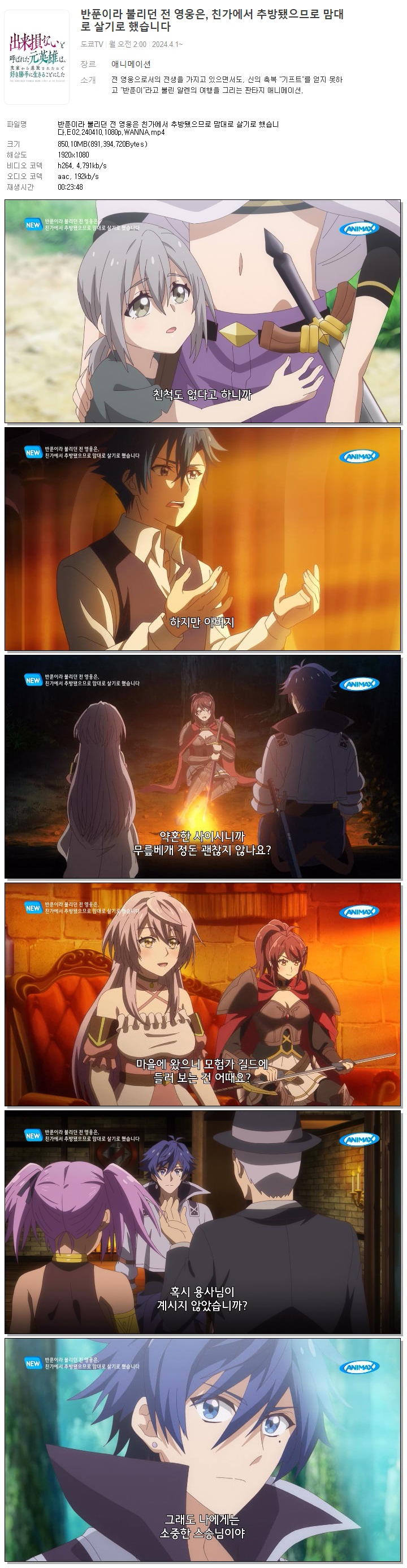 반푼이라 불리던 전 영웅은 친가에서 추방됐으므로 맘대로 살기로 했습니다.E02.240410.1080p.WANNA 다시보기 토렌트